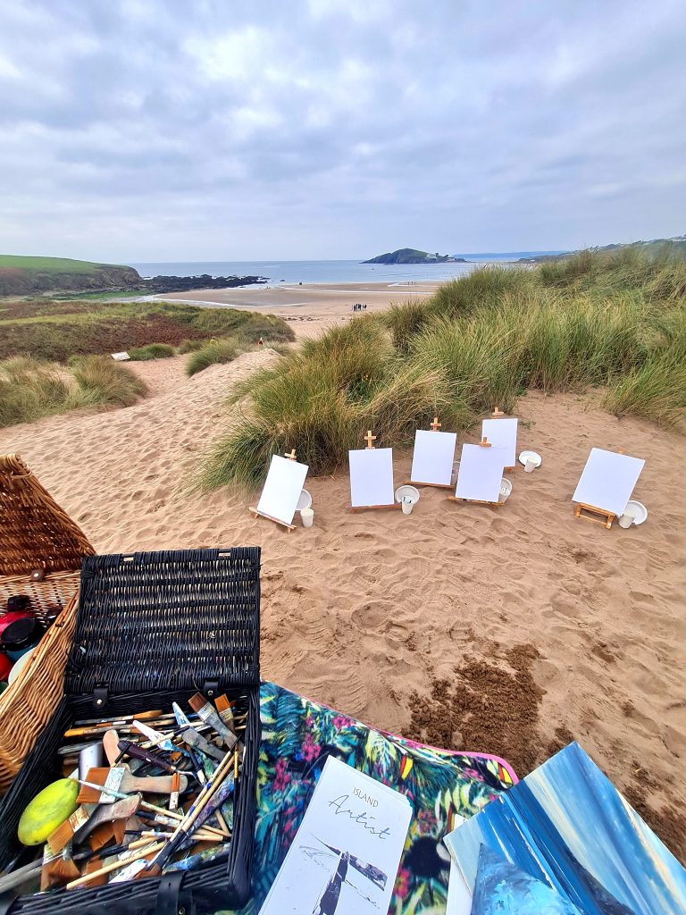Art classes, Eazy Breezy Art School, workshops, residential or non residential, are held throughout the year in the home studio Blue Haze on the English Riviera or at The Burgh Island Hotel or on Burgh Island in Devon.
